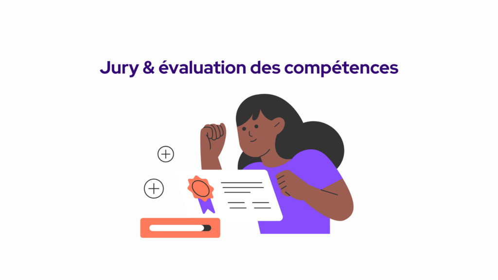 Le jury d’évaluation, chargé d’évaler les compétences des candidats au regard des modalités d’évaluation mises en place. Les résultats doivent être reportée dans des grilles de compétences pré-établies par le certificateur. Ce jury peut être organisé par le certificateur et par ses OF habilités à évaluer.